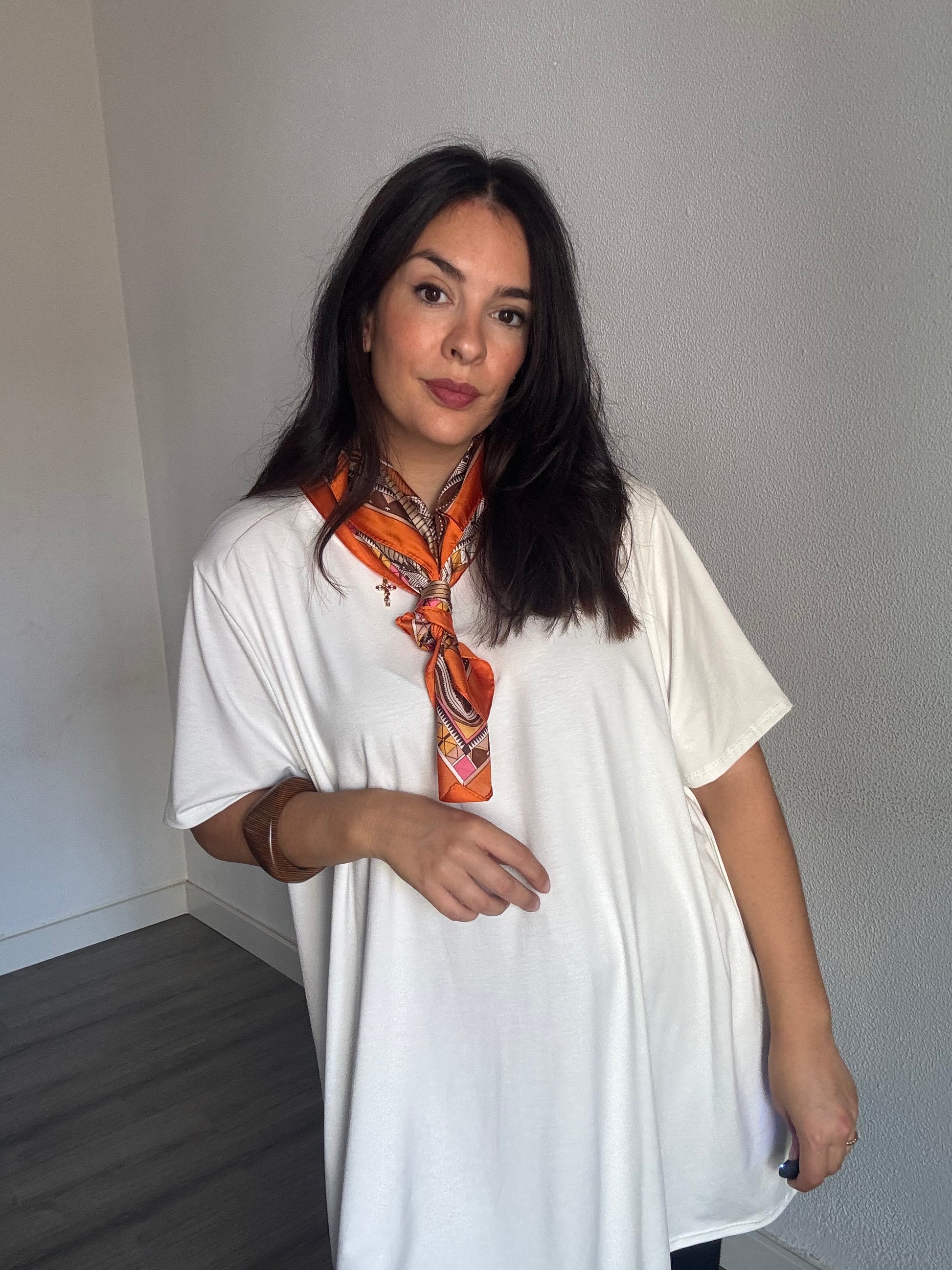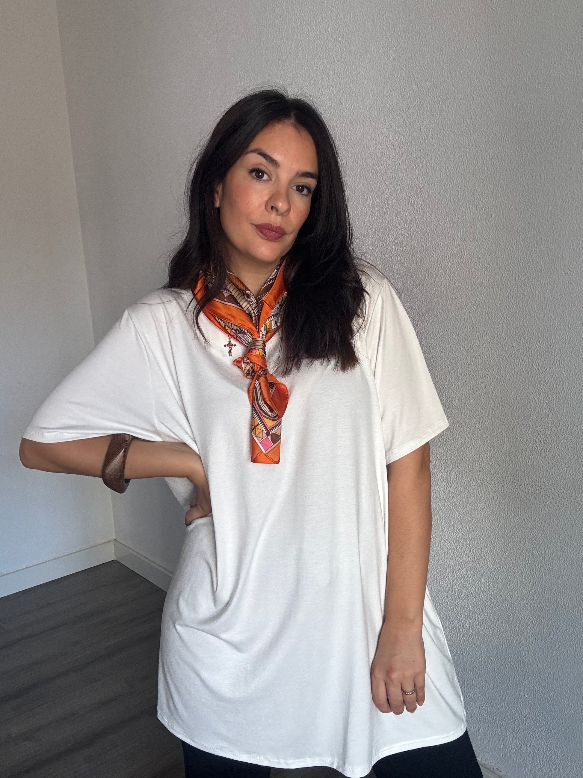 Maxi camiseta de manga corta y cuello redondo.