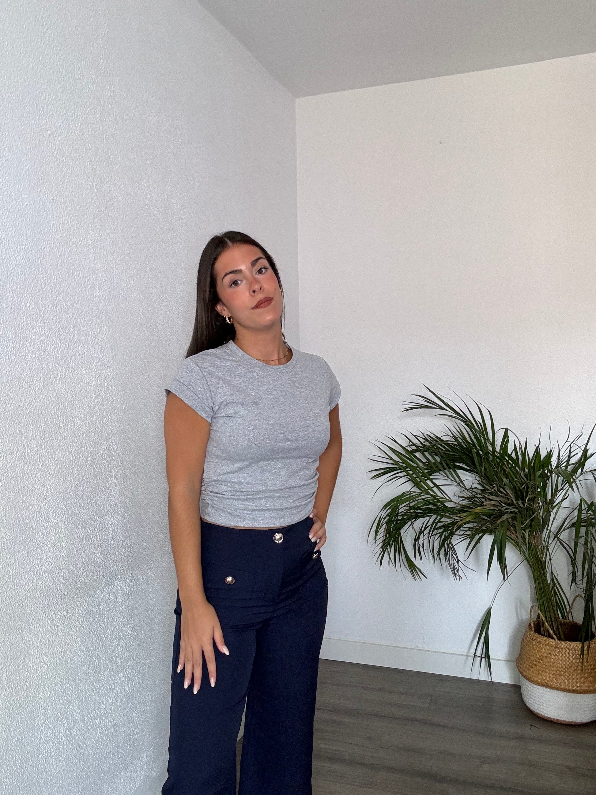 Camiseta de algodón con drapeado en los lados y manga corta. Talla única