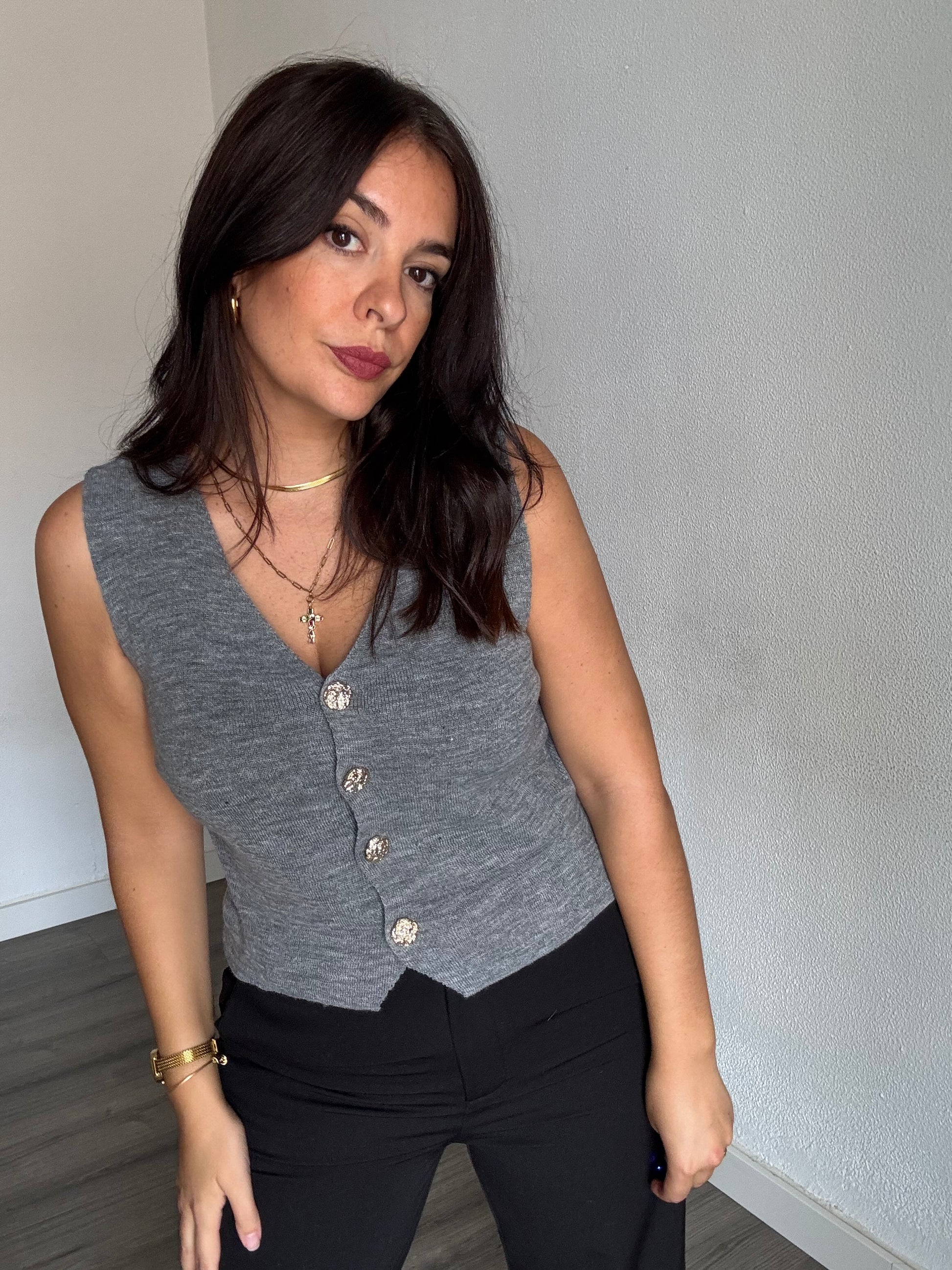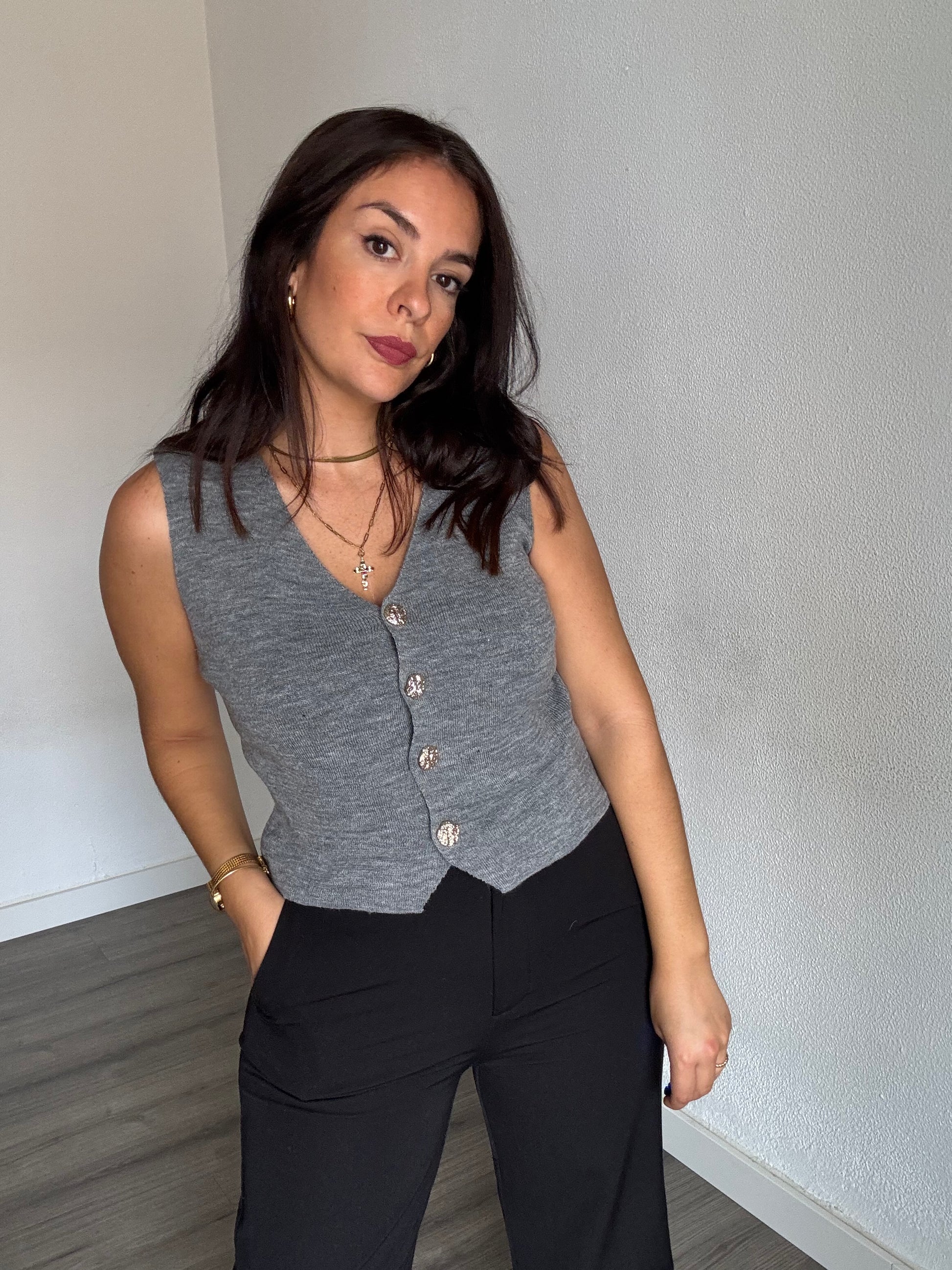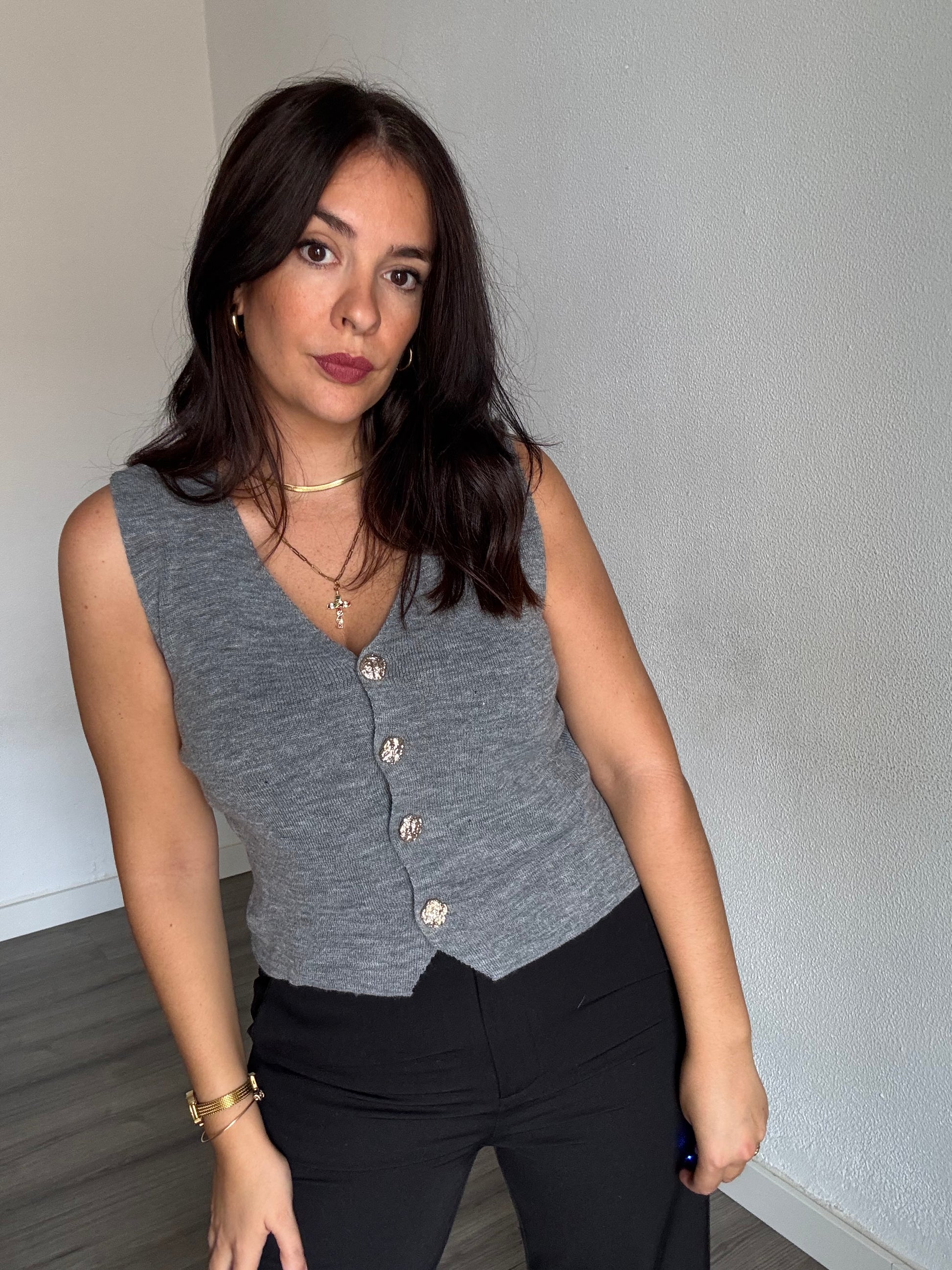 Chalequillo de punto con botones dorados. Talla única que va de una S a XL