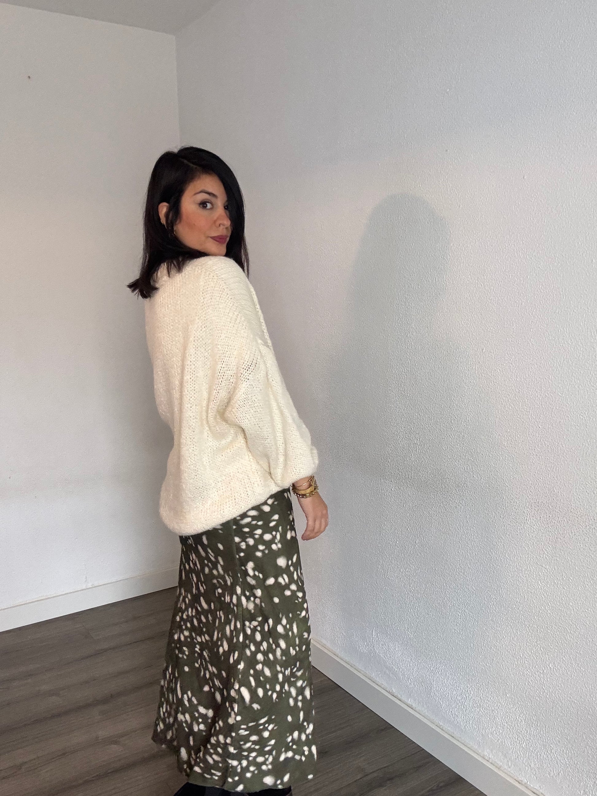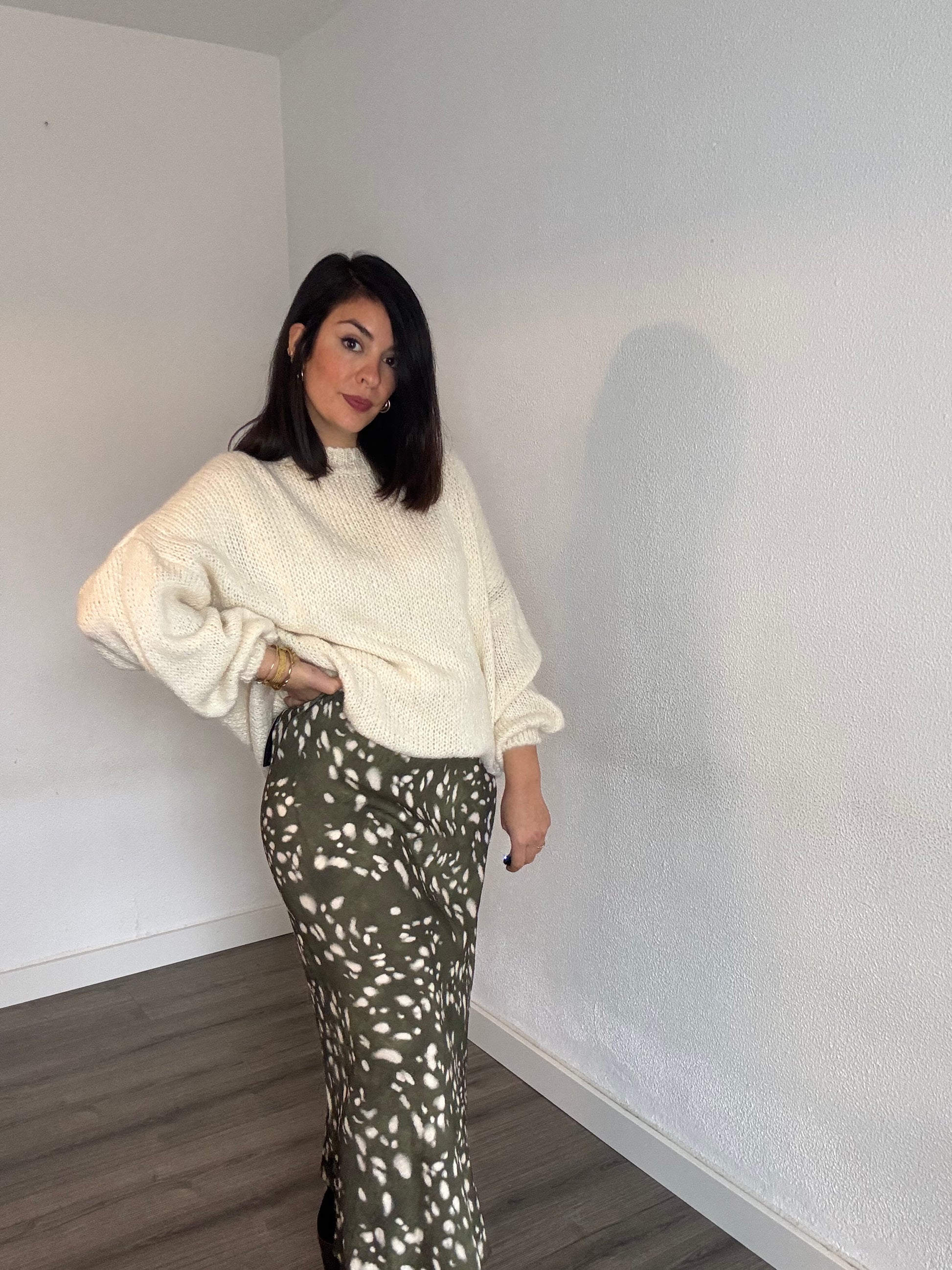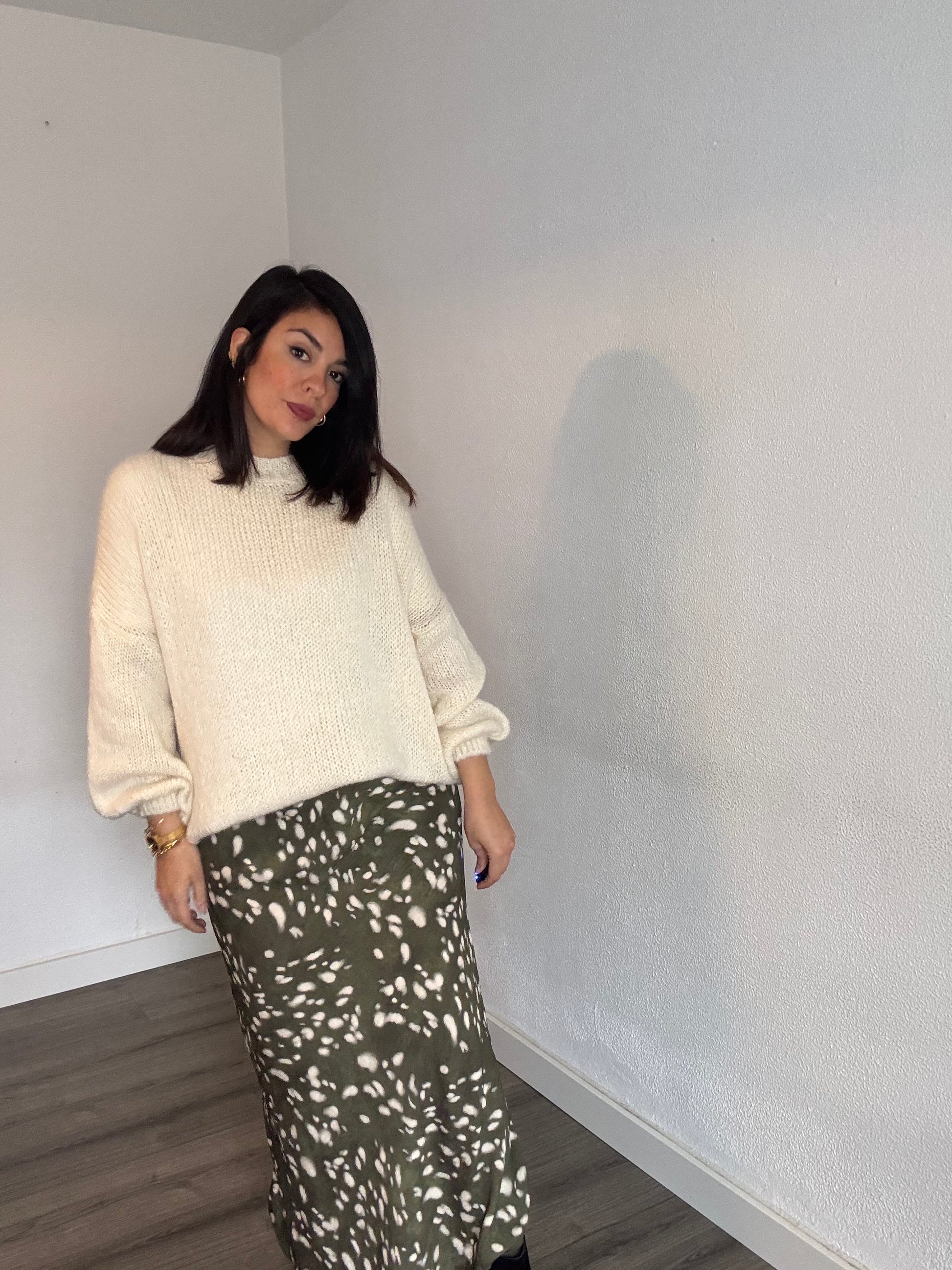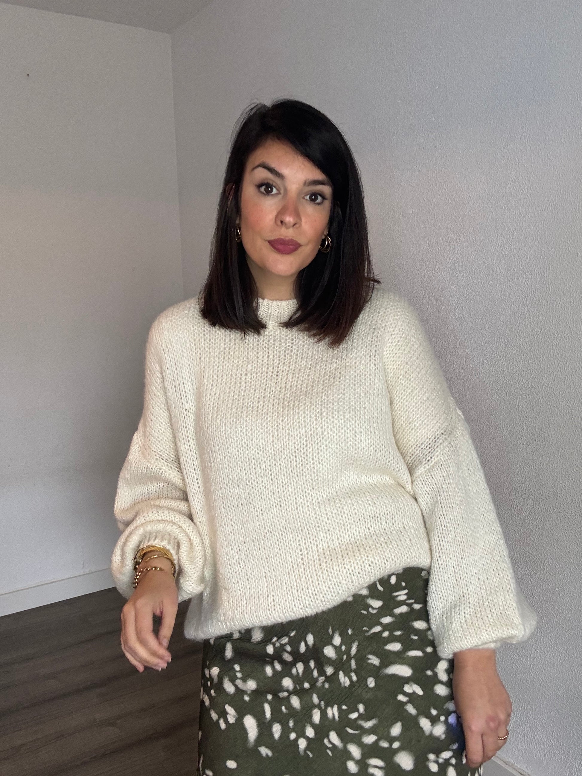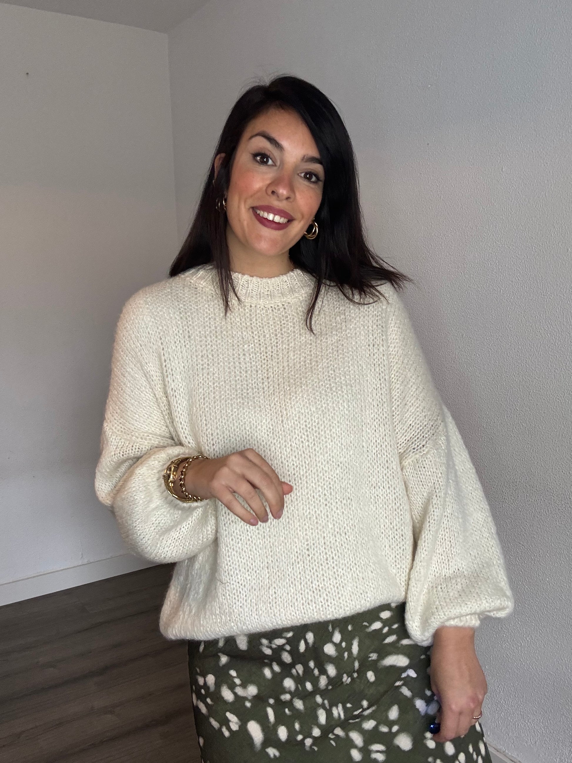 Jersey de punto amplio con cuello redondo y mangas abullonadas.