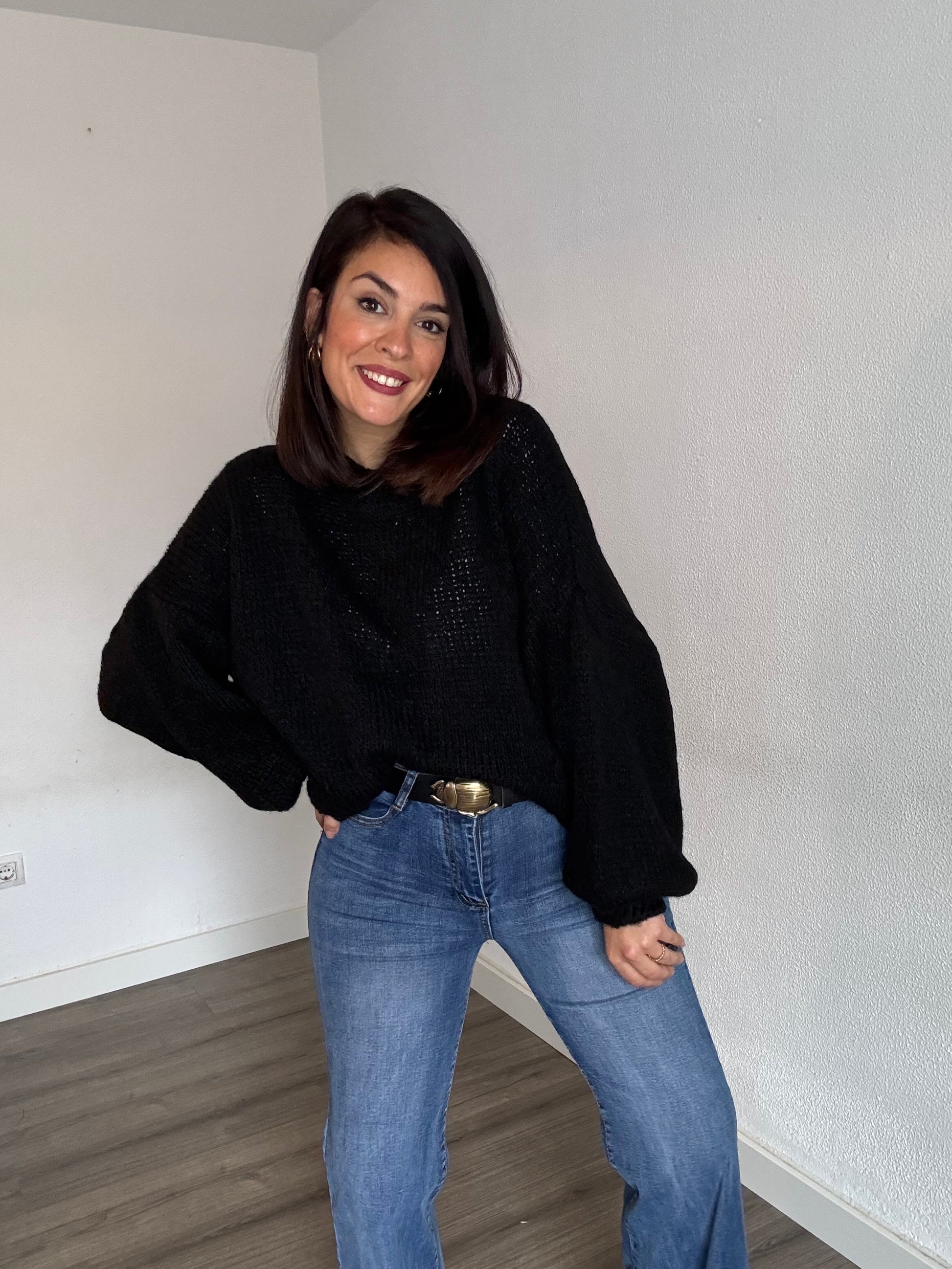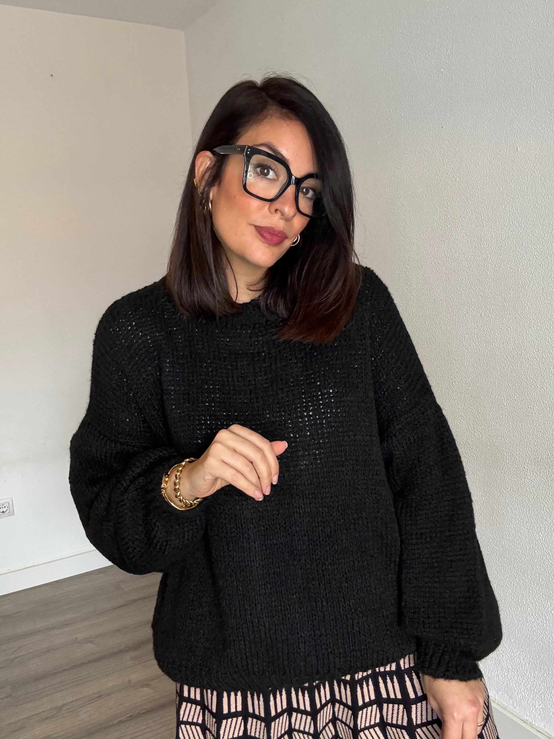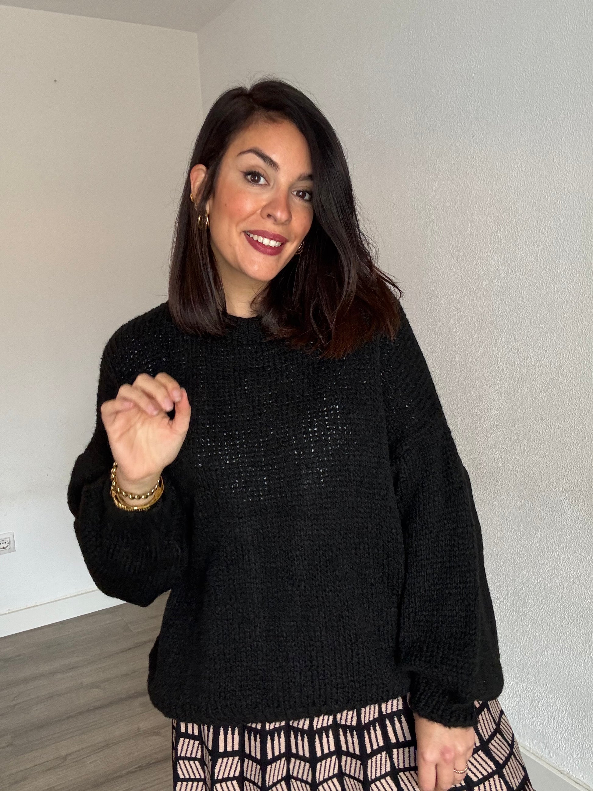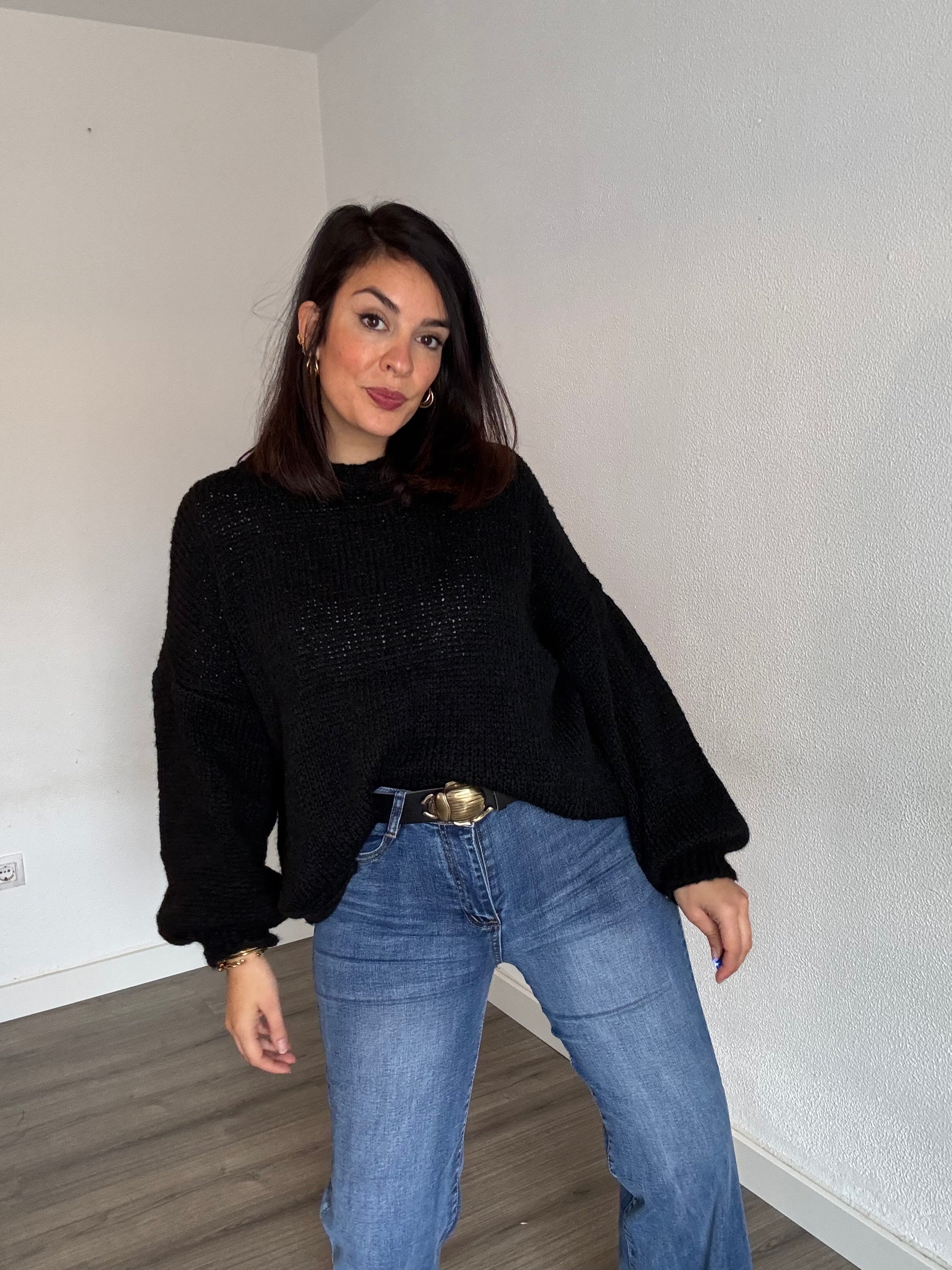 Jersey de punto amplio con cuello redondo y mangas abullonadas.