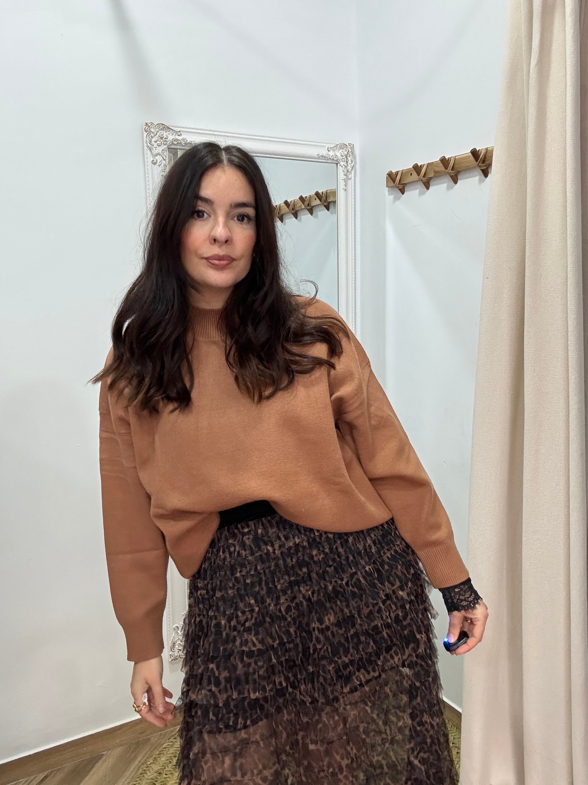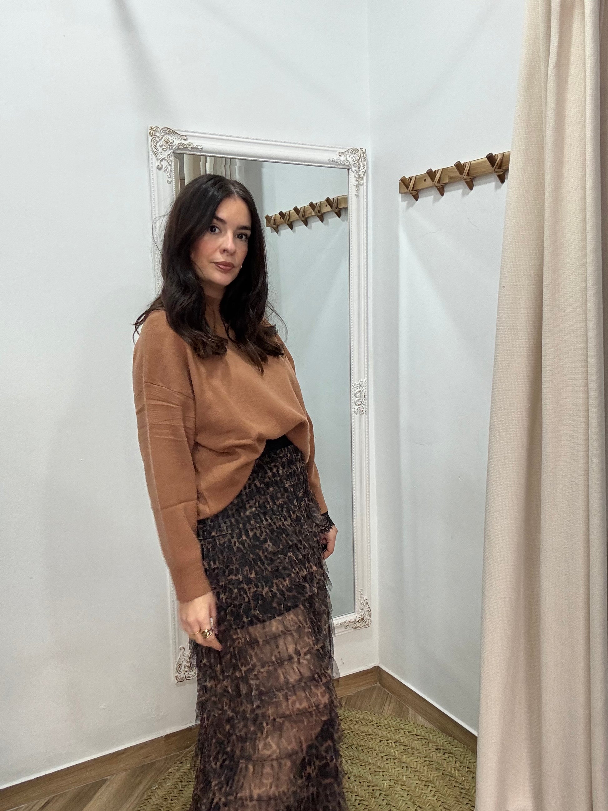 Jersey de cuello perquin con punto gordito. Talla única (da mucha talla)