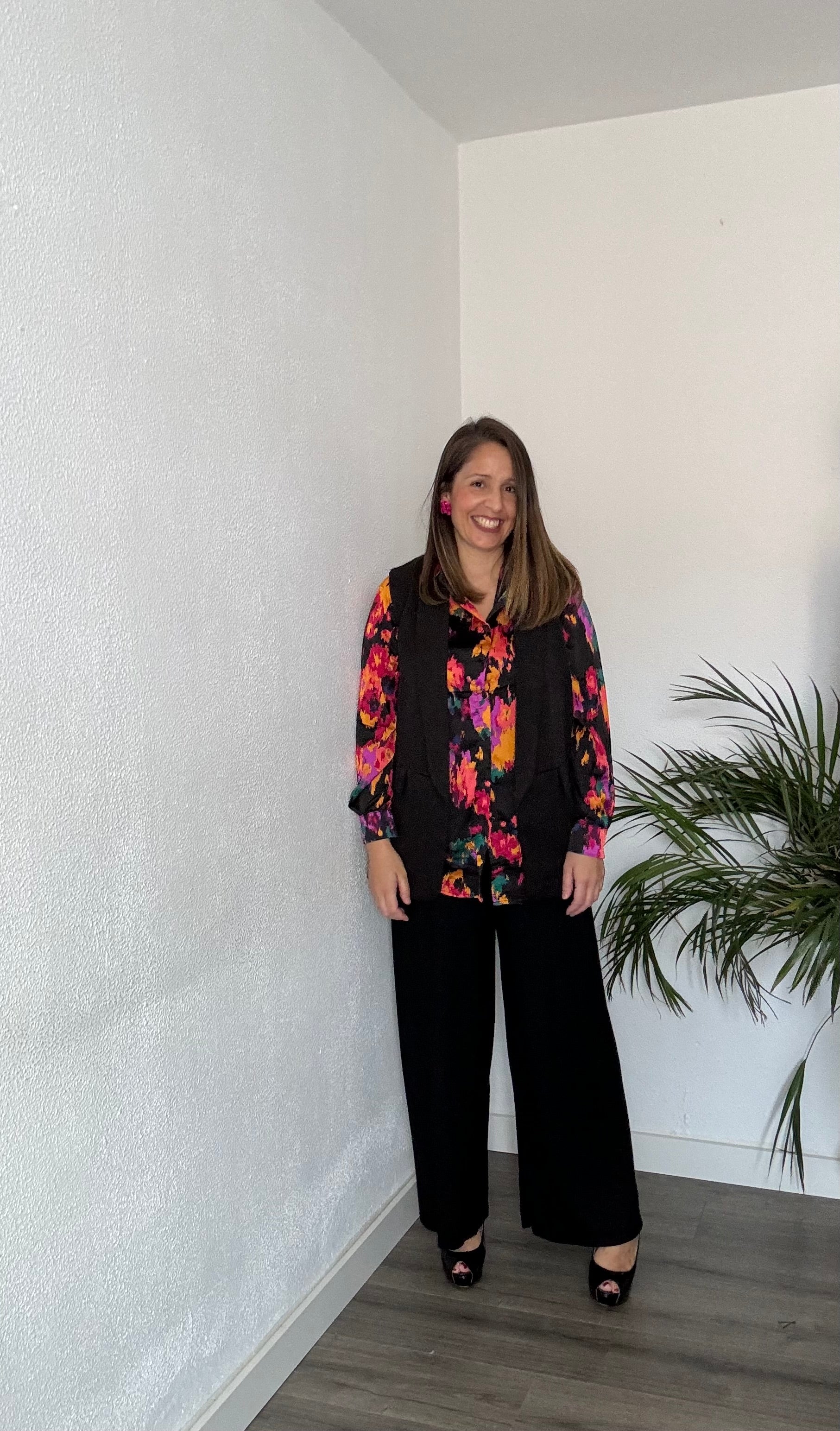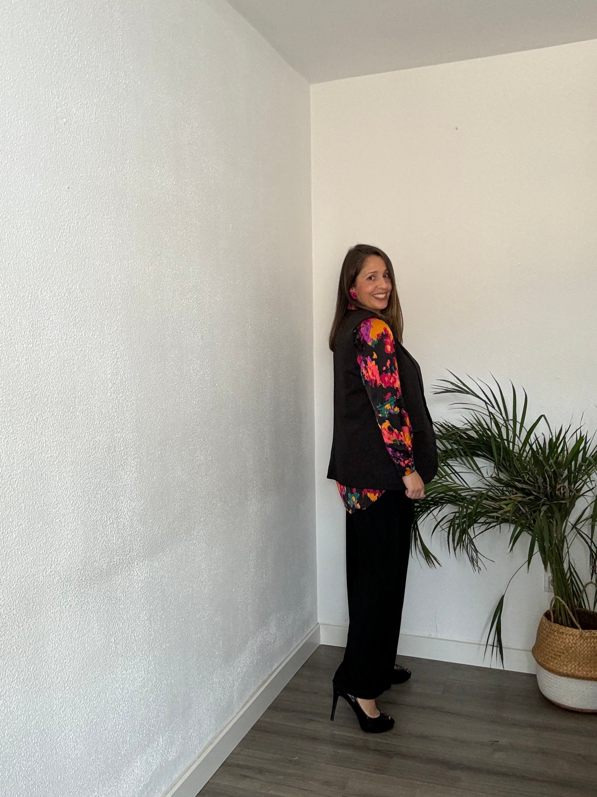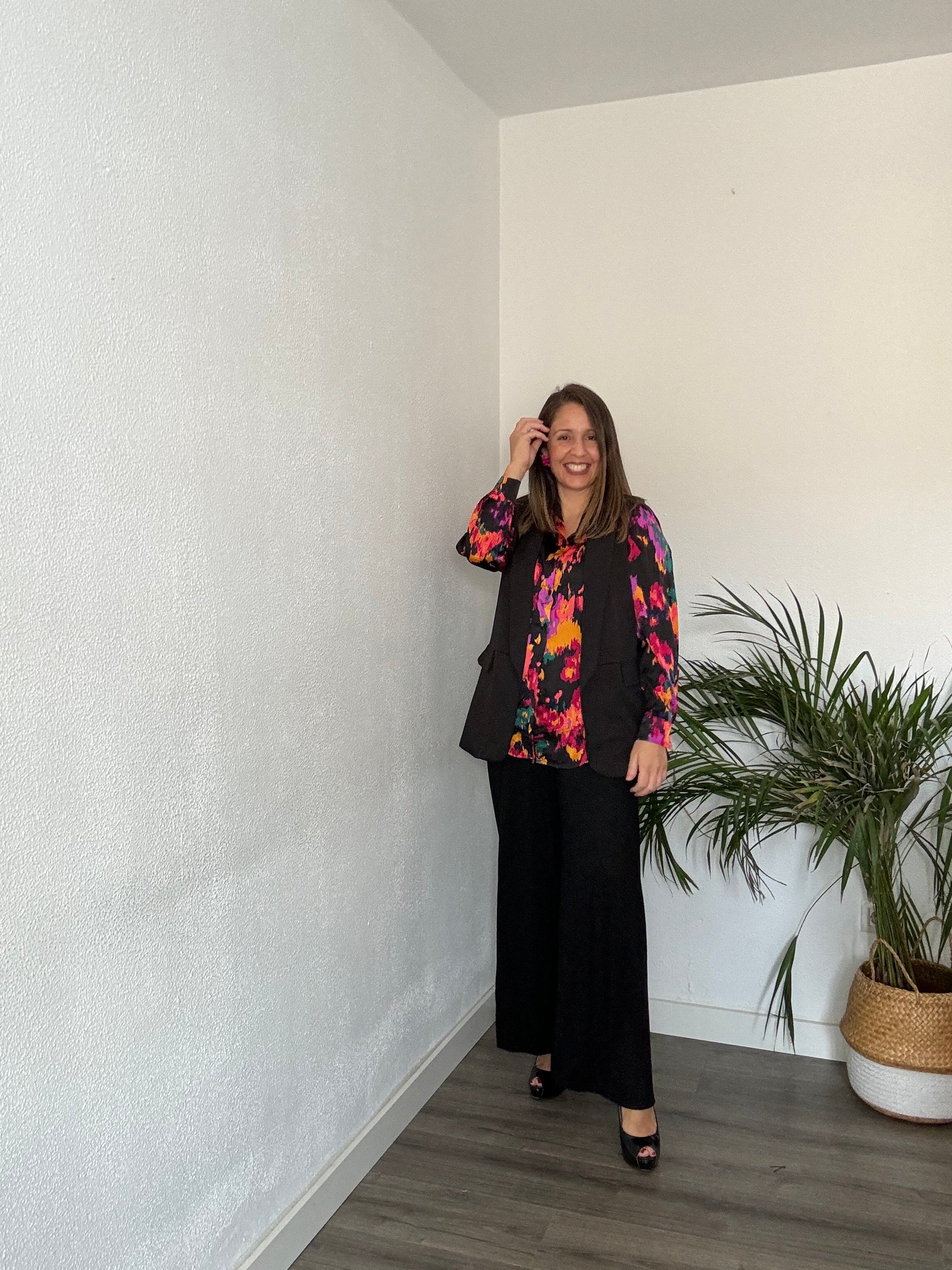 Pantalón de punto con cinturilla elástica y pata ancha. Moda curvy