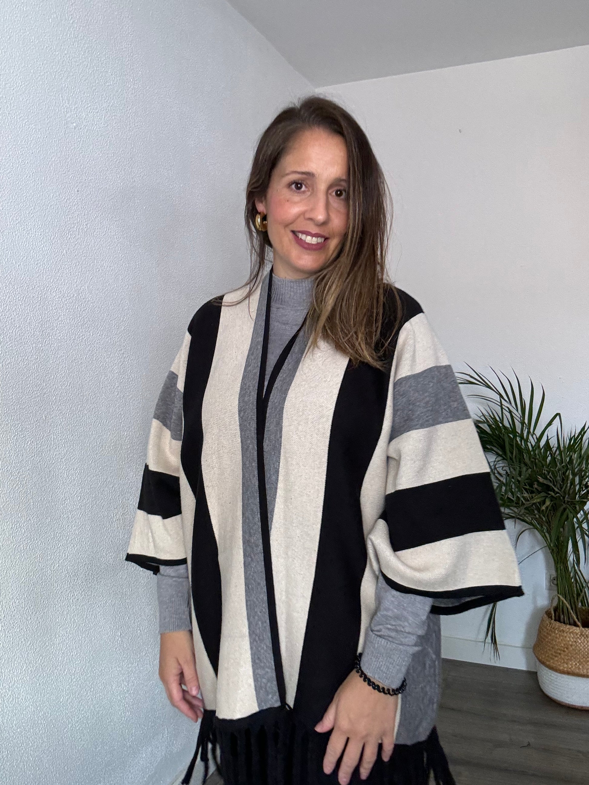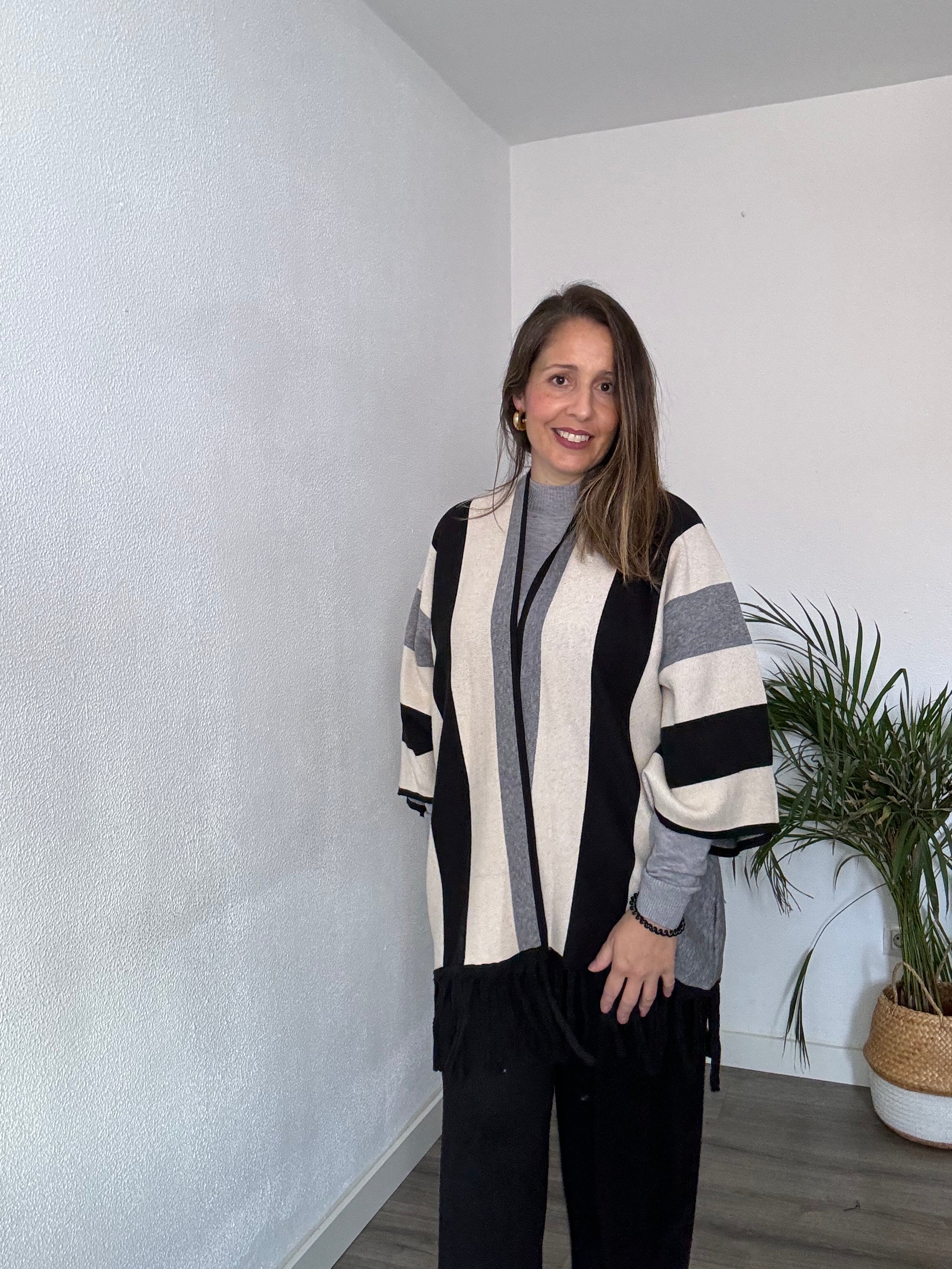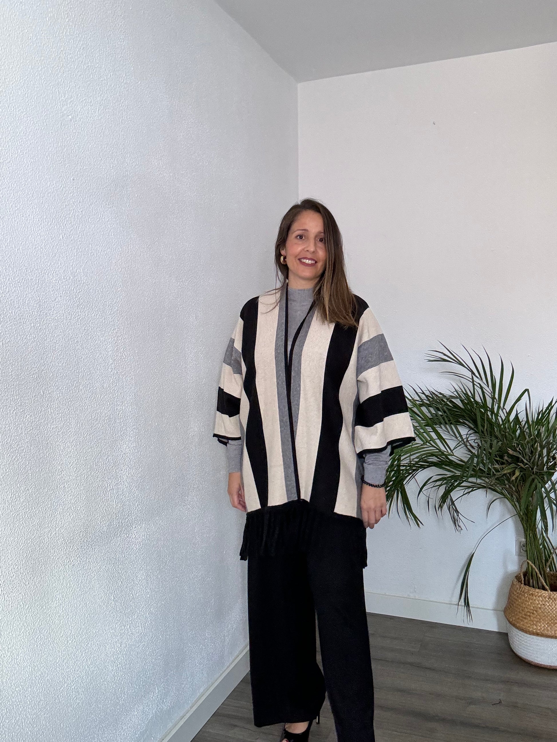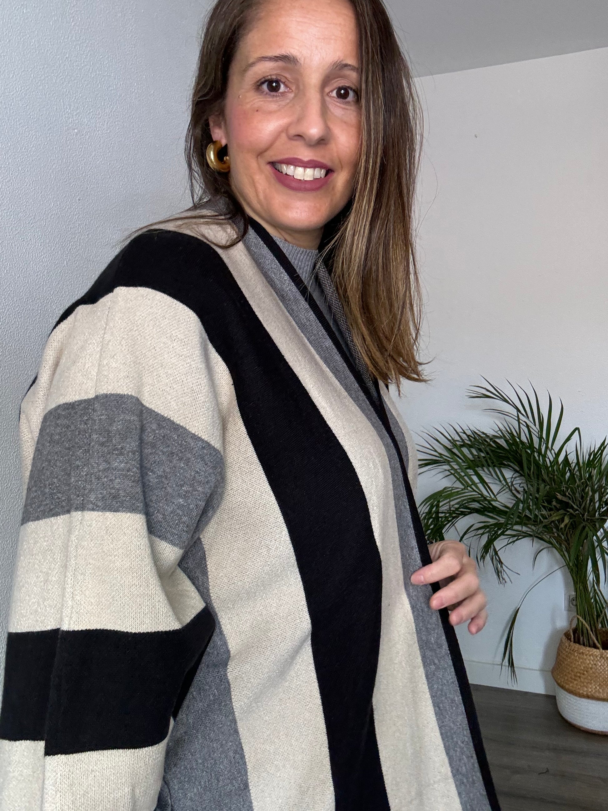 Amplia rebeca abierta de punto con media manga. Talla de la 40 a la 50