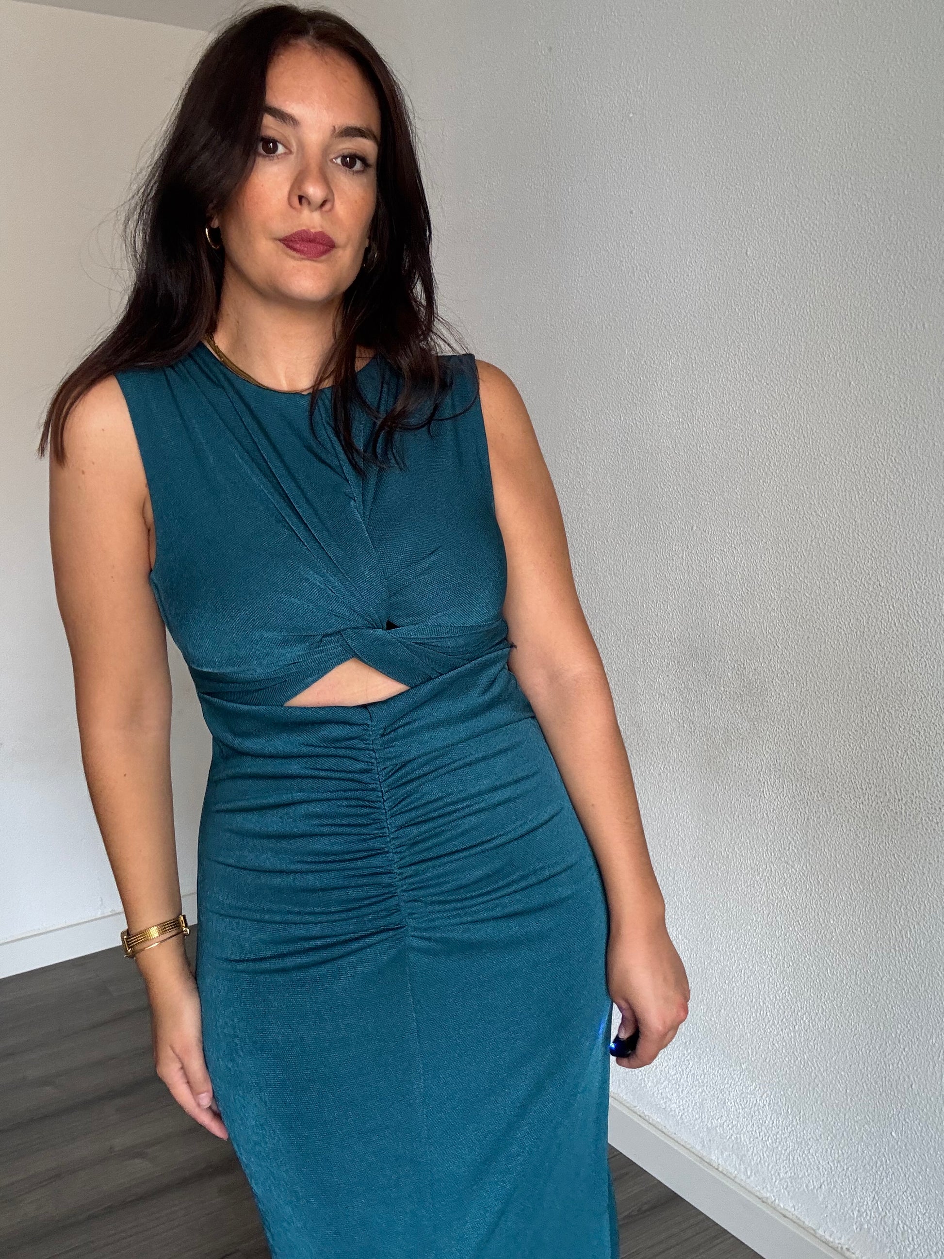 Vestido midi con nudo en el pecho y abertura delantera. Talla única