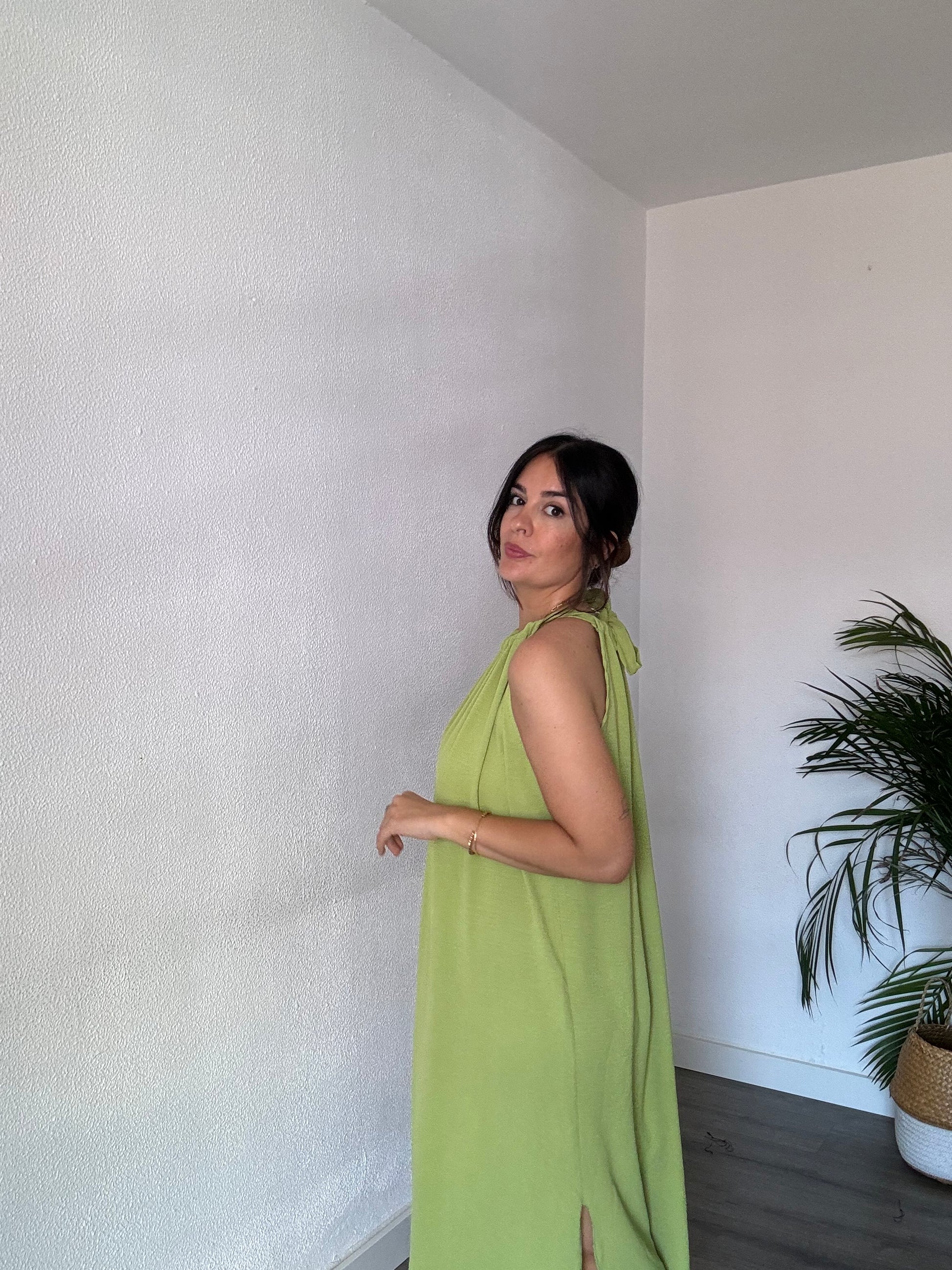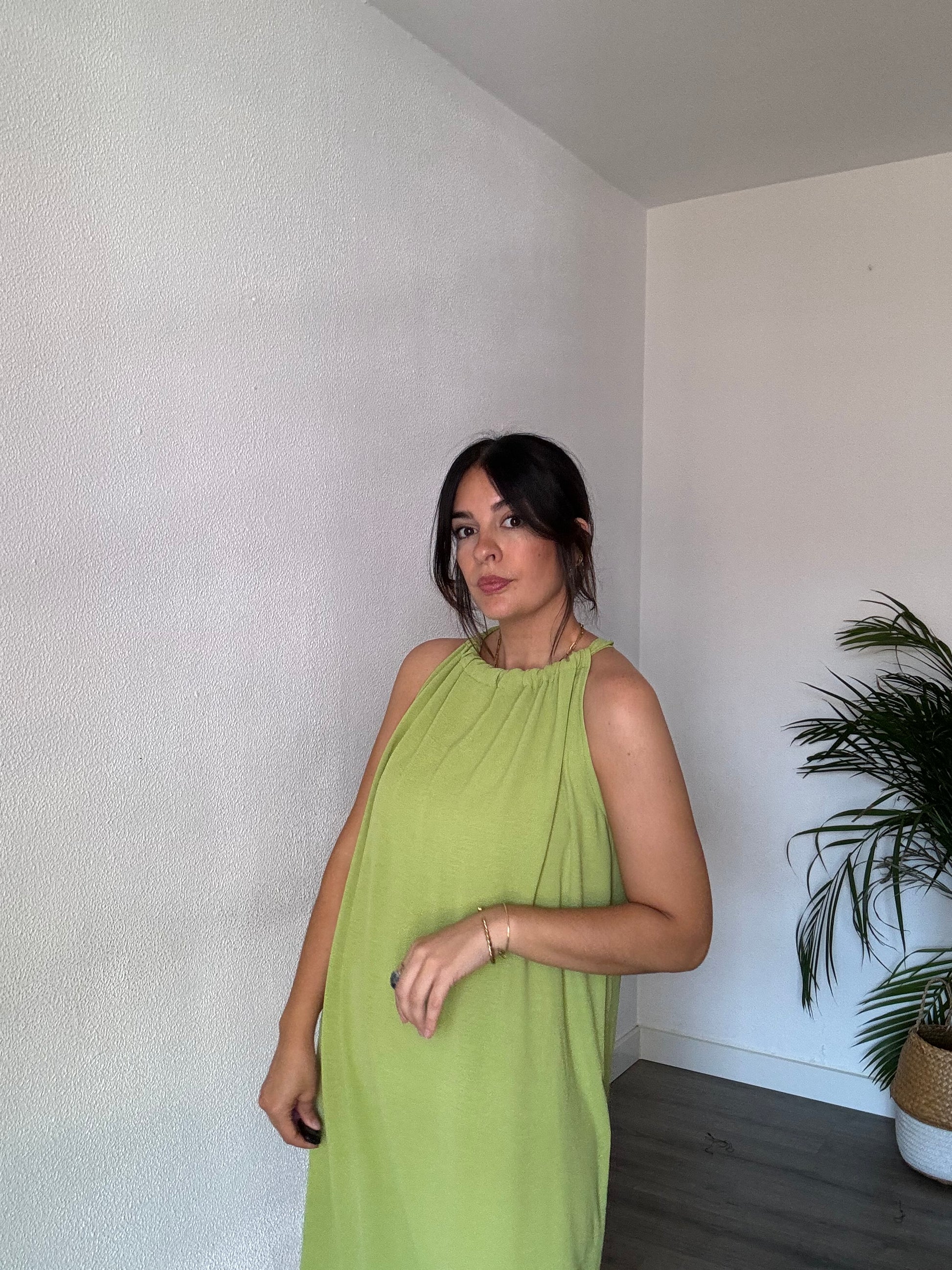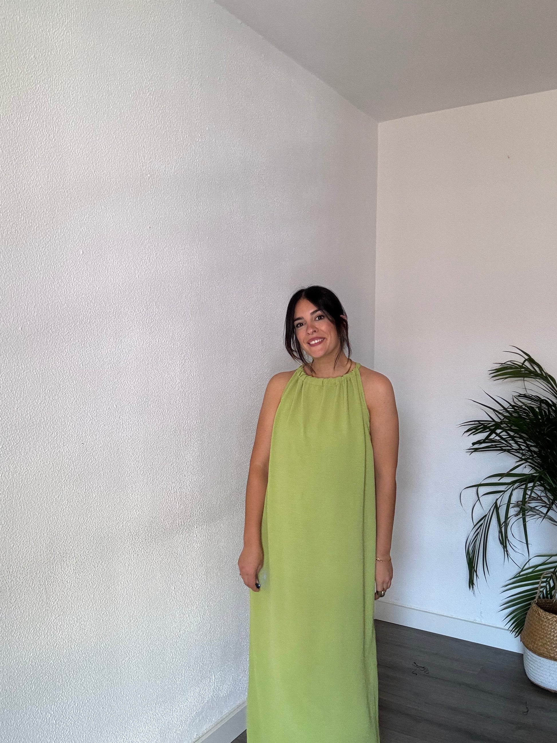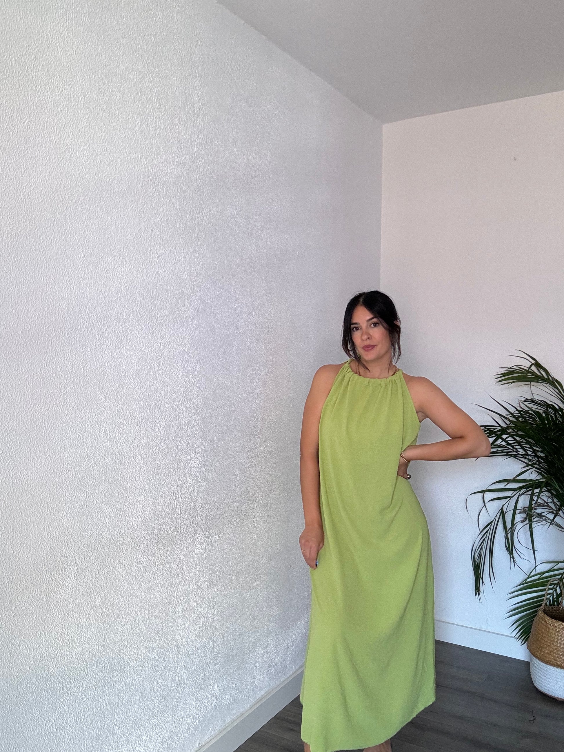 Vestido midi con cuello halter y lazada