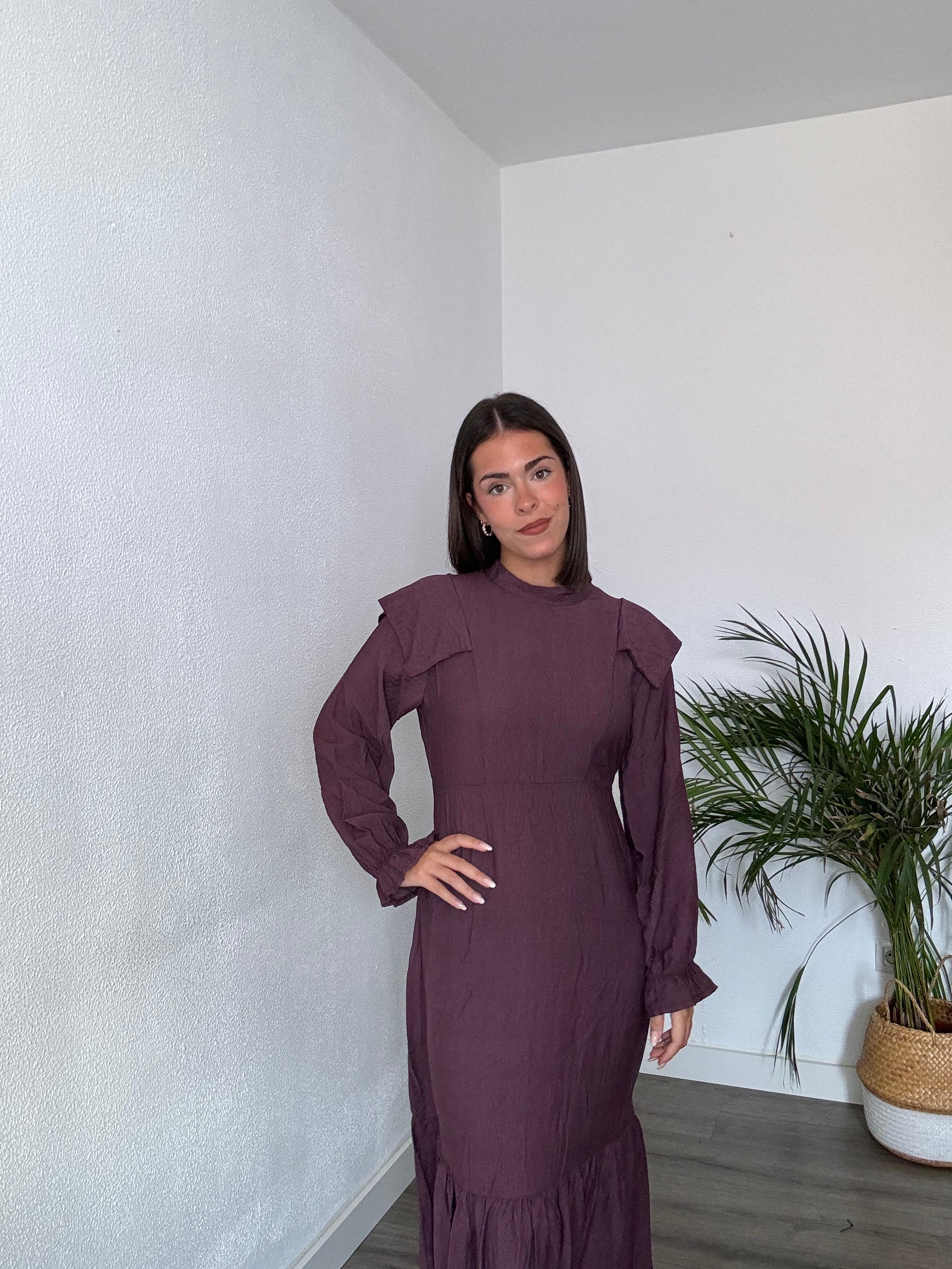 Vestido con corte debajo del pecho y hombreras superpuestas. Talla única